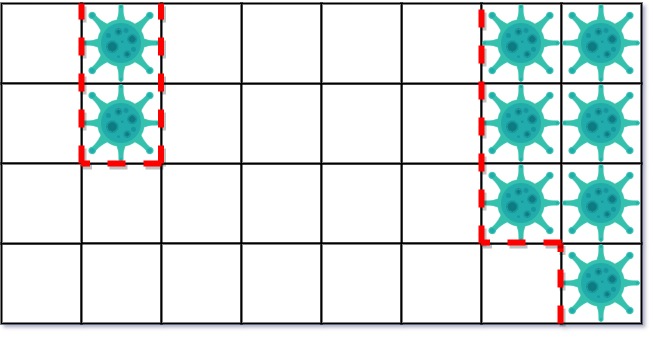 | Two infected regions are adjacent horizontally or vertically | The perimeter calculation should correctly account for shared edges, avoiding double-counting. |