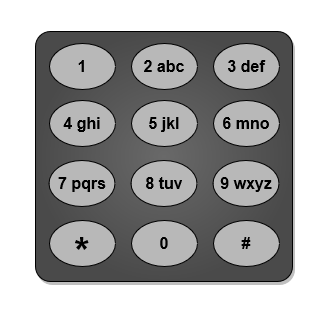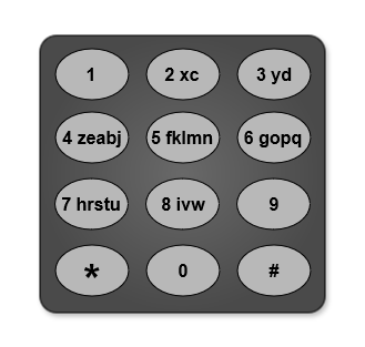 An example mapping of letters to keys on a telephone keypad is given below. Note that 1, *, #, and 0 do not map to any letters.