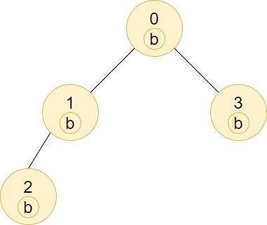 Input: n = 4, edges = [[0,1],[1,2],[0,3]], labels = "bbbb" Output: [4,2,1,1] Explanation: The sub-tree of node 2 contains only node 2, so the answer is 1. The sub-tree of node 3 contains only node 3, so the answer is 1. The sub-tree of node 1 contains nodes 1 and 2, both have label 'b', thus the answer is 2. The sub-tree of node 0 contains nodes 0, 1, 2 and 3, all with label 'b', thus the answer is 4.