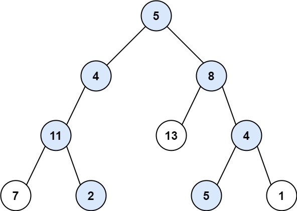 Input: root = [5,4,8,11,null,13,4,7,2,null,null,5,1], targetSum = 22
